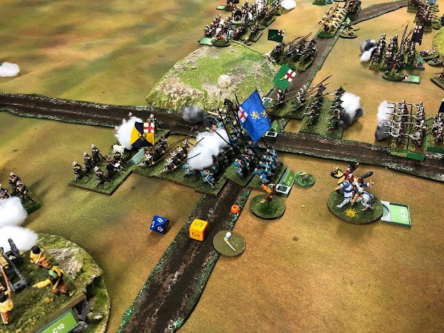 1. Thank you Jon, and you are quite right, the persistent attacks allowed the guns top be more effective. For a bit of comparison Napoleonic guns would be UP 2 at 0-8", UP 1 at 8-12 inches, No change at 12-18", Down 1 at 18 - 24", and Down 2 at 24 - 36". ECW artillery is NO change 0 -12", Down 1 12-24", and Down 2 24 - 36". In addition, Napoleonic guns are UP 1 for shooting at columns and squares, whilst there are NO bonuses for shooting at the relatively dense formations of the ECW.