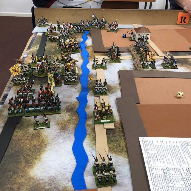 "Mon General, the Austrians had two batteries when I arrived... I had one. They had two regiments of cavalry... I had one. I was holding my own until his lancers broke a square (each side rolls a d10 in combat. I rolled a 2 and he rolled a 10!) That was enough to make my infantry test their morale. They failed, and broke out of square to fall back. A second infantry unit received a charge in line, failed to form square, and was beaten... but not broken. That ended that!"