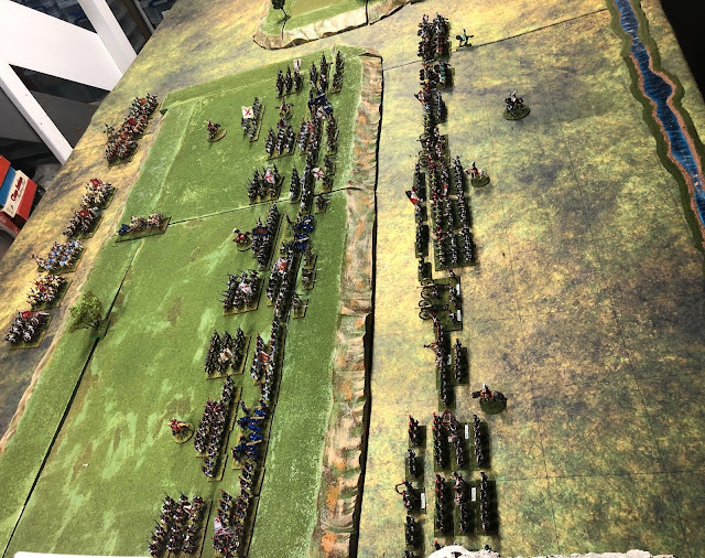 2 regiments each of (recently painted Piano Wargames) Dragoons and Chasseurs hope to sweep around the Spanish right flank.